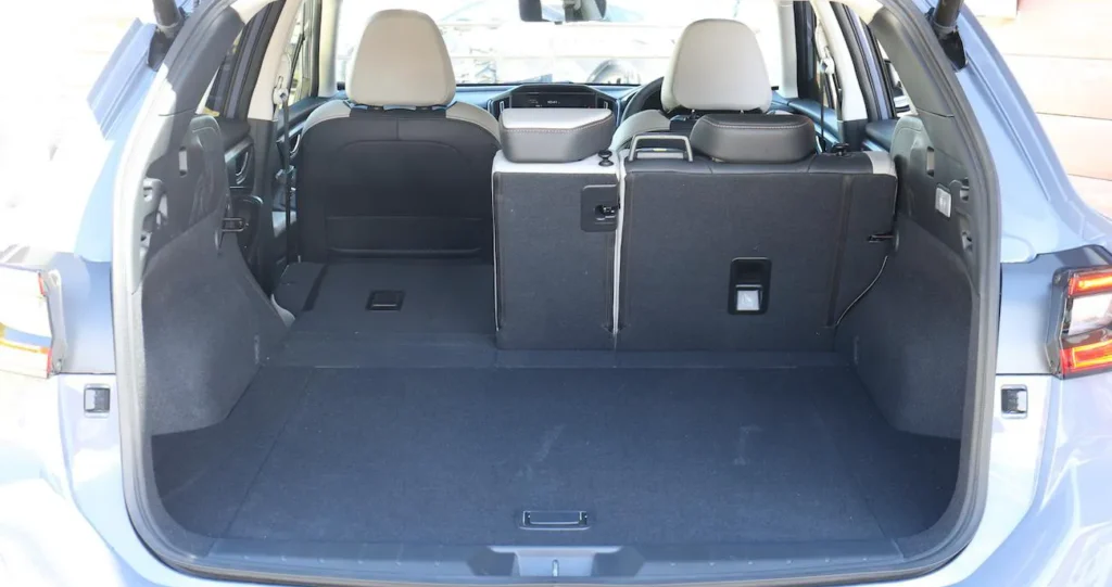 Багажник Levorg невероятно практичен: он просторный, глубокий, с ровным полом и дополнительным отсеком под ним, который предлагает более чем достаточное пространство. Объём багажного отделения над полом составляет 492 л, а под полом — 69 л, что в точности соответствует объёму Layback. Общий объём — 561 л — соответствует объёму багажника Subaru Outback, флагмана этого бренда.