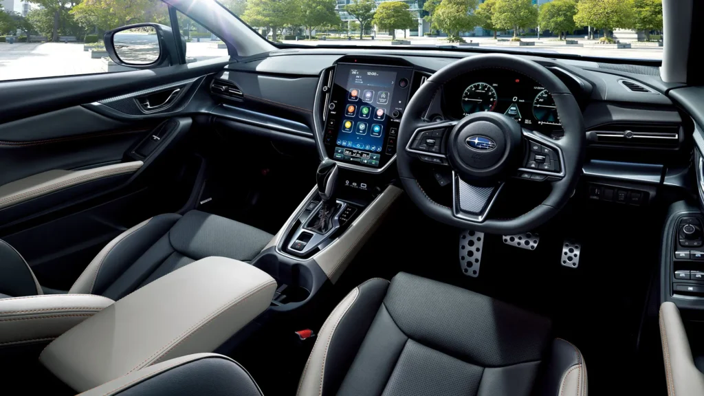 Компоновка приборной панели отличается вертикальным центральным монитором. Усовершенствованная система помощи водителю EyeSight обновлена до последней версии, добавив к существующей стереокамере широкоугольную монокулярную камеру. Система предотвращения столкновений была дополнительно улучшена.