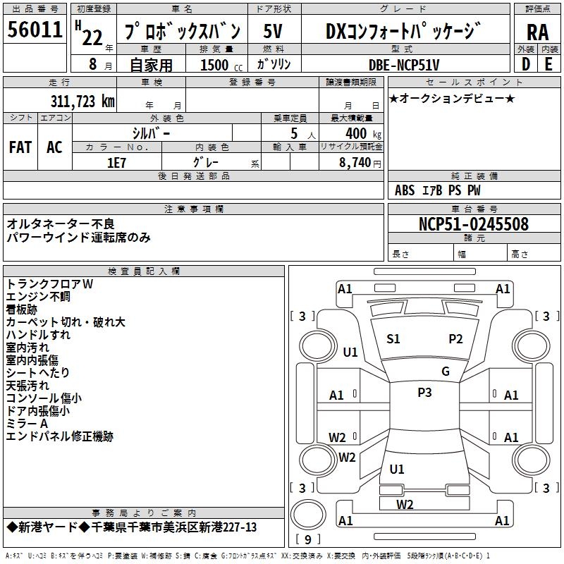 Продажа автомобиля TOYOTA PROBOX PROBOX год, Лот 56011, торги от 05.03.2026 с аукционов Японии