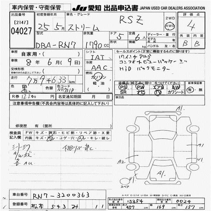 Купить автомобиль Honda STREAM 2013 год, лот 4027 с аукционов Японии