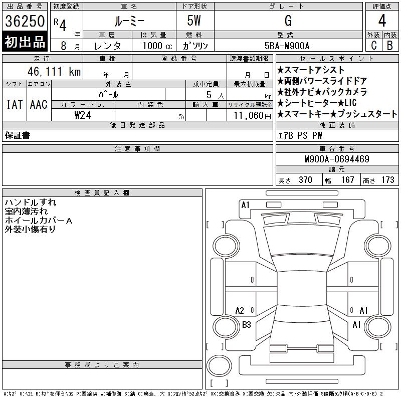 Продажа автомобиля Toyota ROOMY ROOMY год, Лот 36250, торги от 26.11.2025 с аукционов Японии