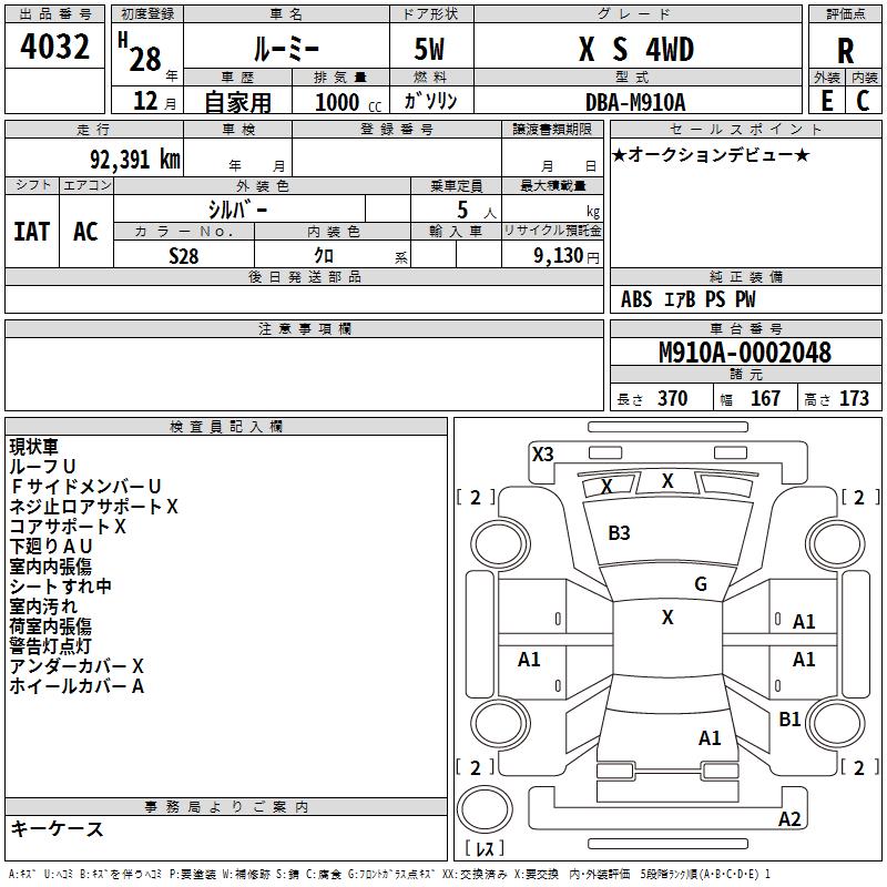 Купить автомобиль Toyota TANK 2016 год, лот 4032 с аукционов Японии