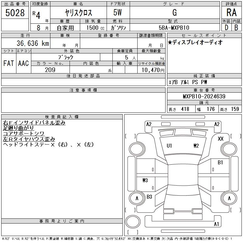 Продажа автомобиля Toyota YARIS CROSS YARIS CROSS год, Лот 5028, торги от 03.02.2026 с аукционов Японии
